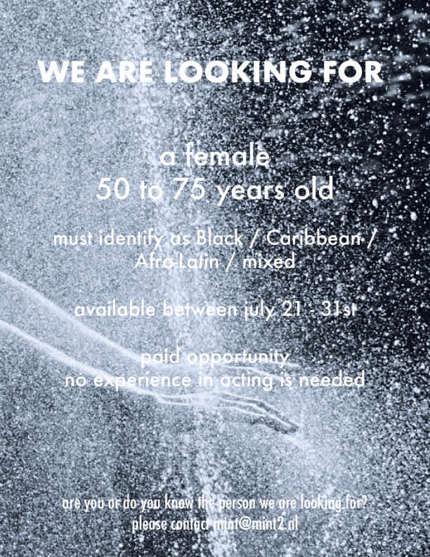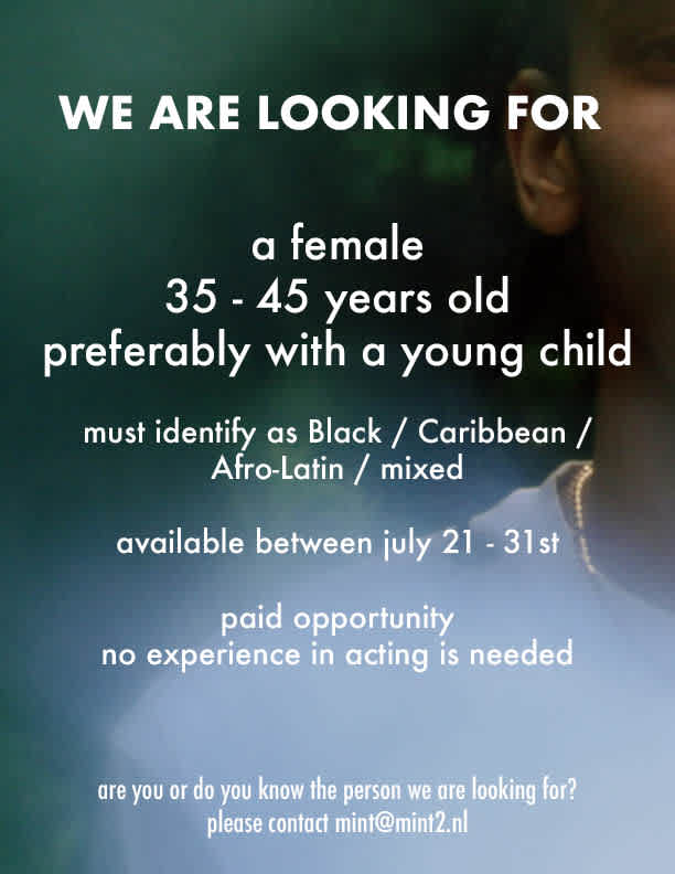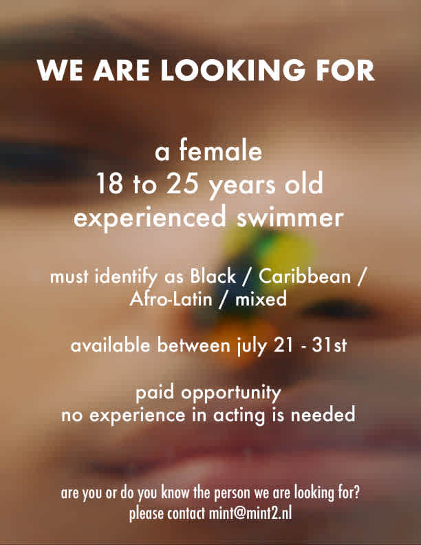 Casting Call for Tarona’s new film AWA. Are you, or do you know the person who we are looking for? E-mail us al mint@mint2.nl